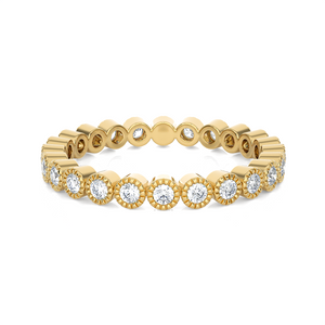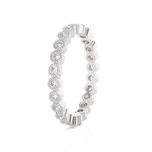 Introducing the exquisite "Basima Eternity Ring," a symbol of everlasting love and timeless beauty. This stunning eternity band features a continuous row of round-cut diamonds that encircle the finger in a captivating display. Crafted with meticulous attention to detail, the Basima Eternity Ring is the perfect choice for a wedding band or as a symbol of enduring commitment in any special occasion.