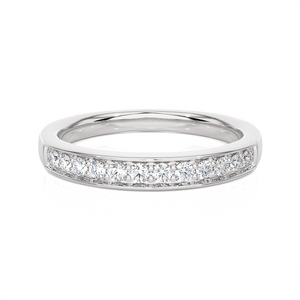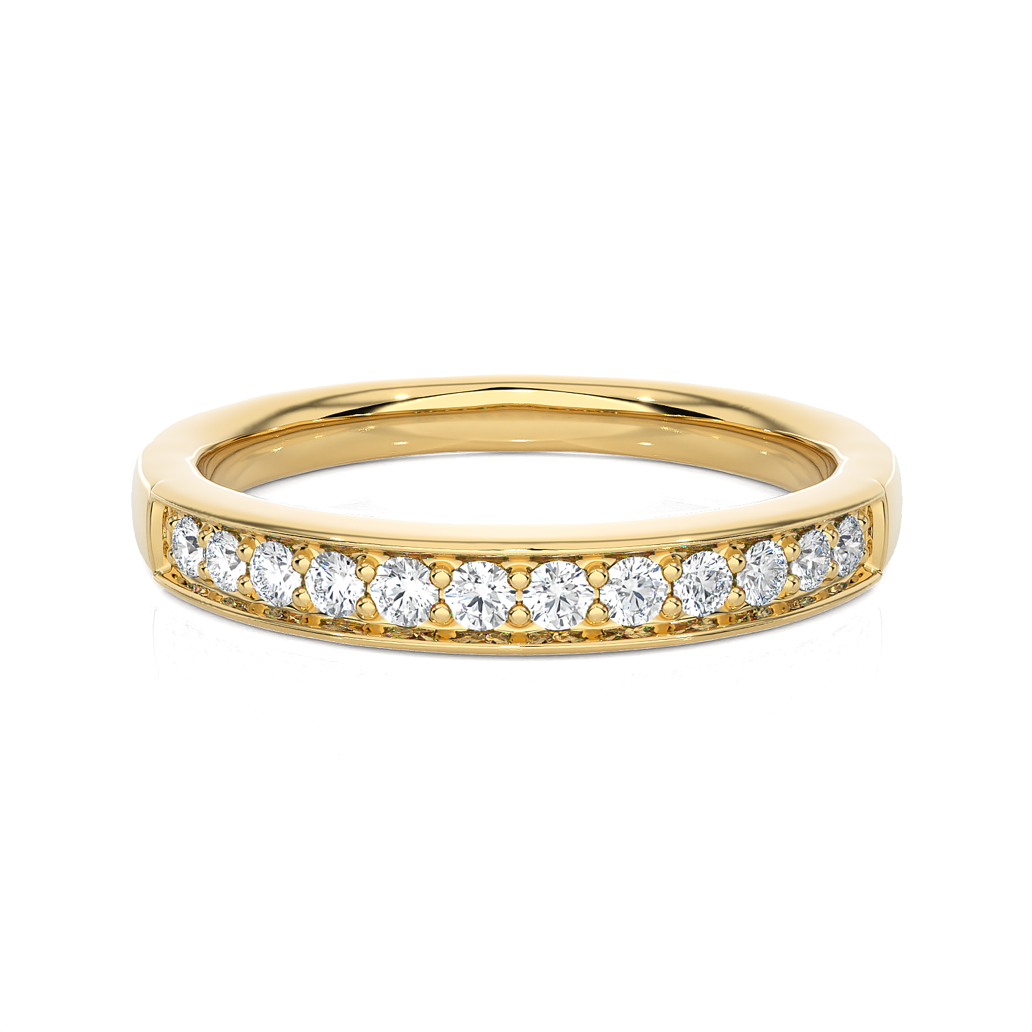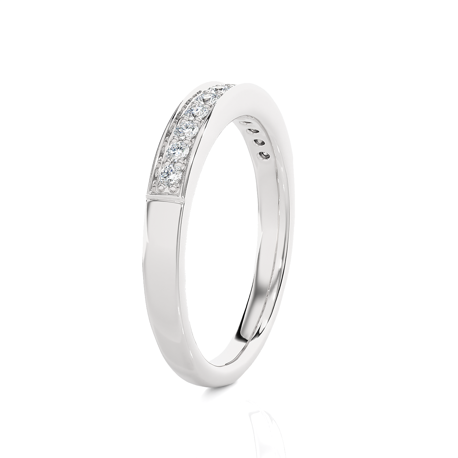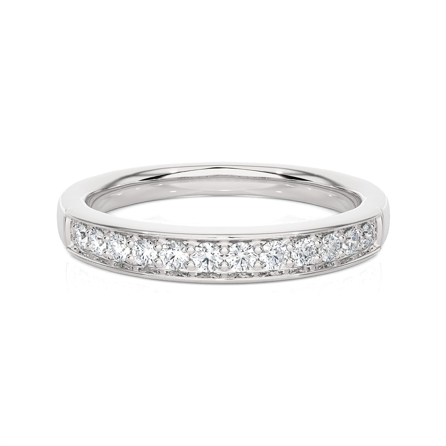 Introducing the Belinda Wedding Band, a symbol of everlasting love and commitment. This diamond band showcases a classic and delicate design, exuding elegance and grace. With its sleek profile and shimmering diamonds, it adds a touch of sparkle to any ensemble. Whether worn alone or stacked with other rings, the Belinda Wedding Band is a timeless and versatile choice for your special day and beyond.