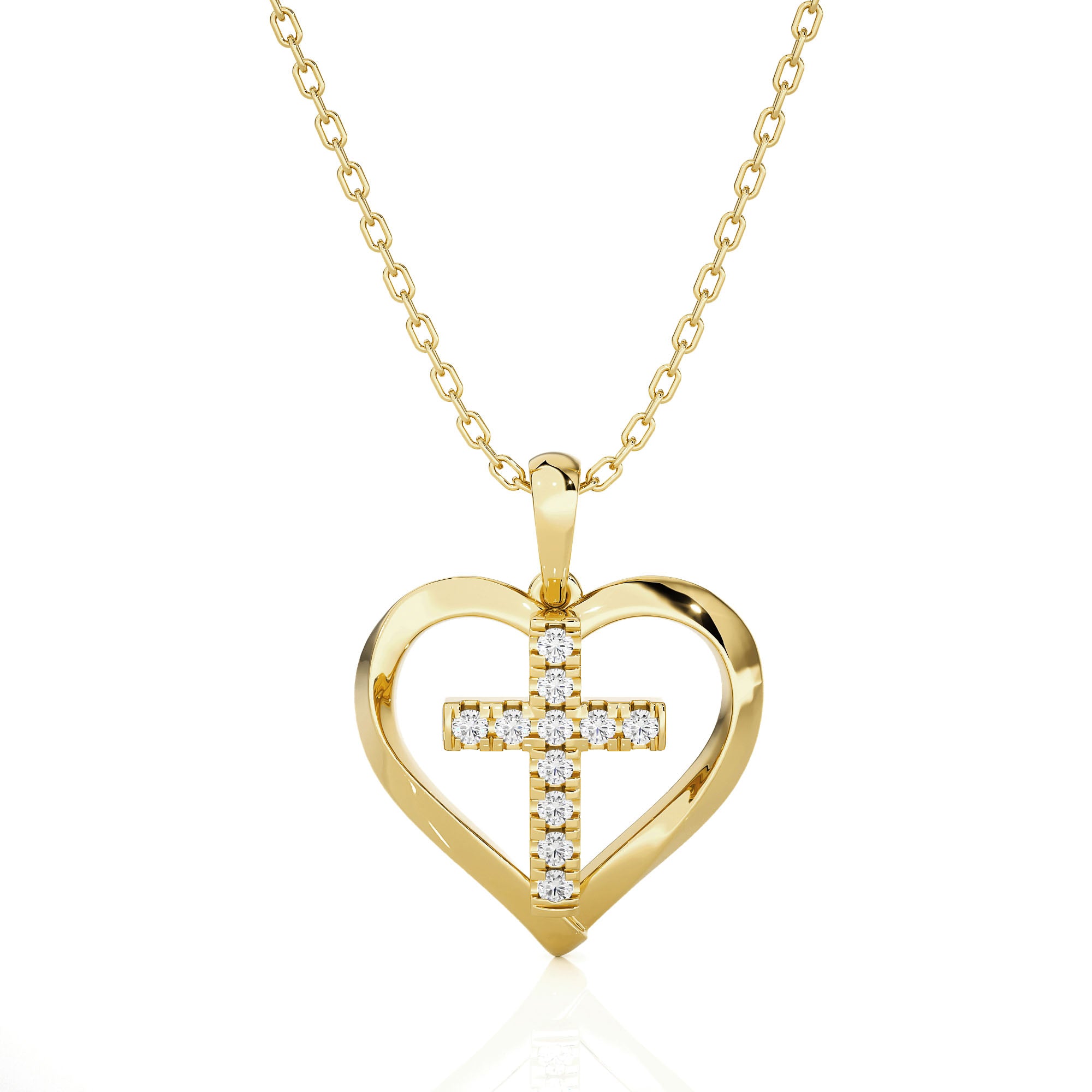 Showcase your love for your faith with this thoughtfully made 14k gold heart halo Necklace, finely crafted in a bright shine. The glittering round brilliant cut lab grown diamonds prong set in a petite Cross inside of the halo gives it added meaning, perfect for wearing daily as a source of divine inspiration.