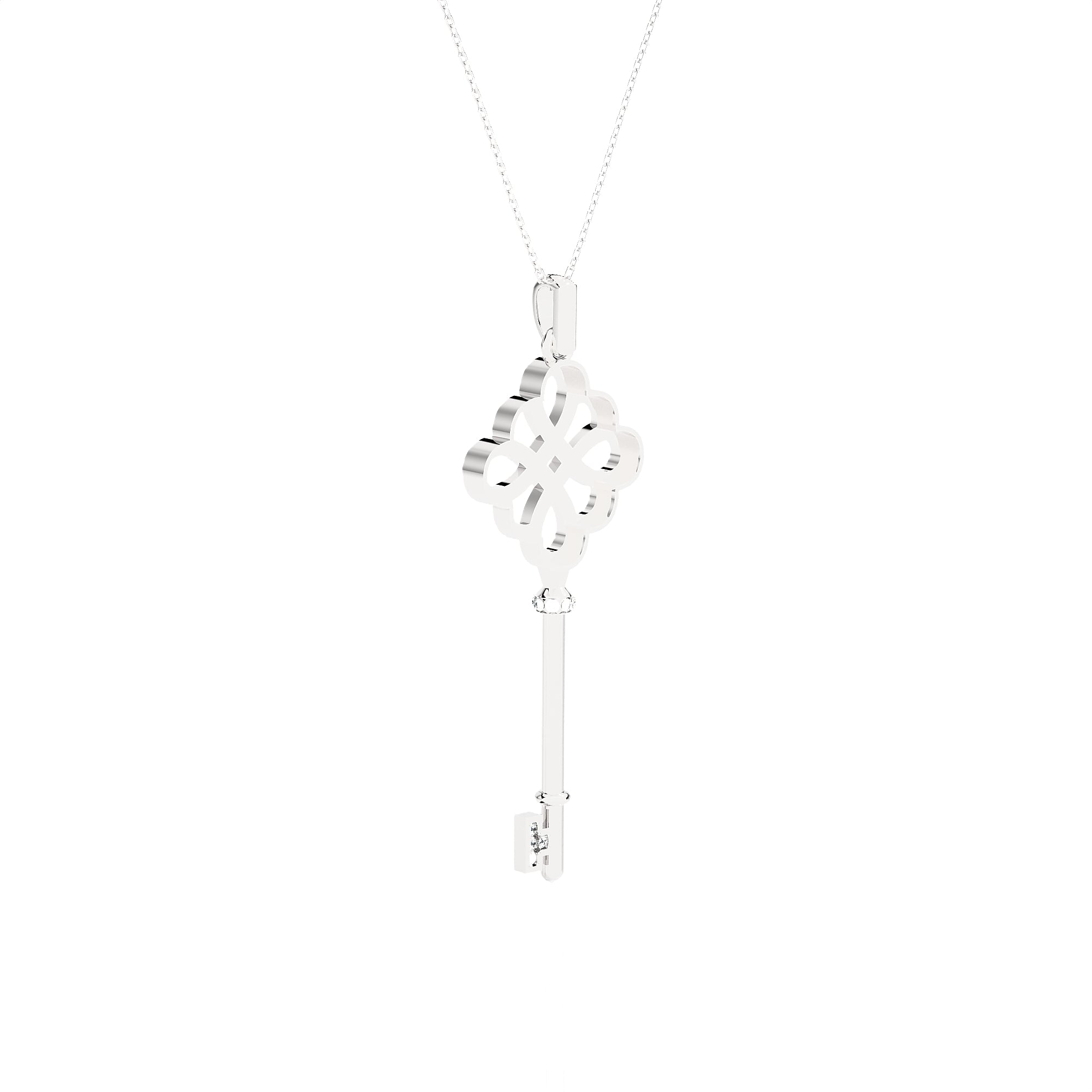 Floral Key Diamond Necklace Necklace