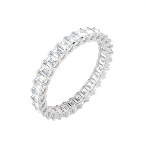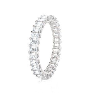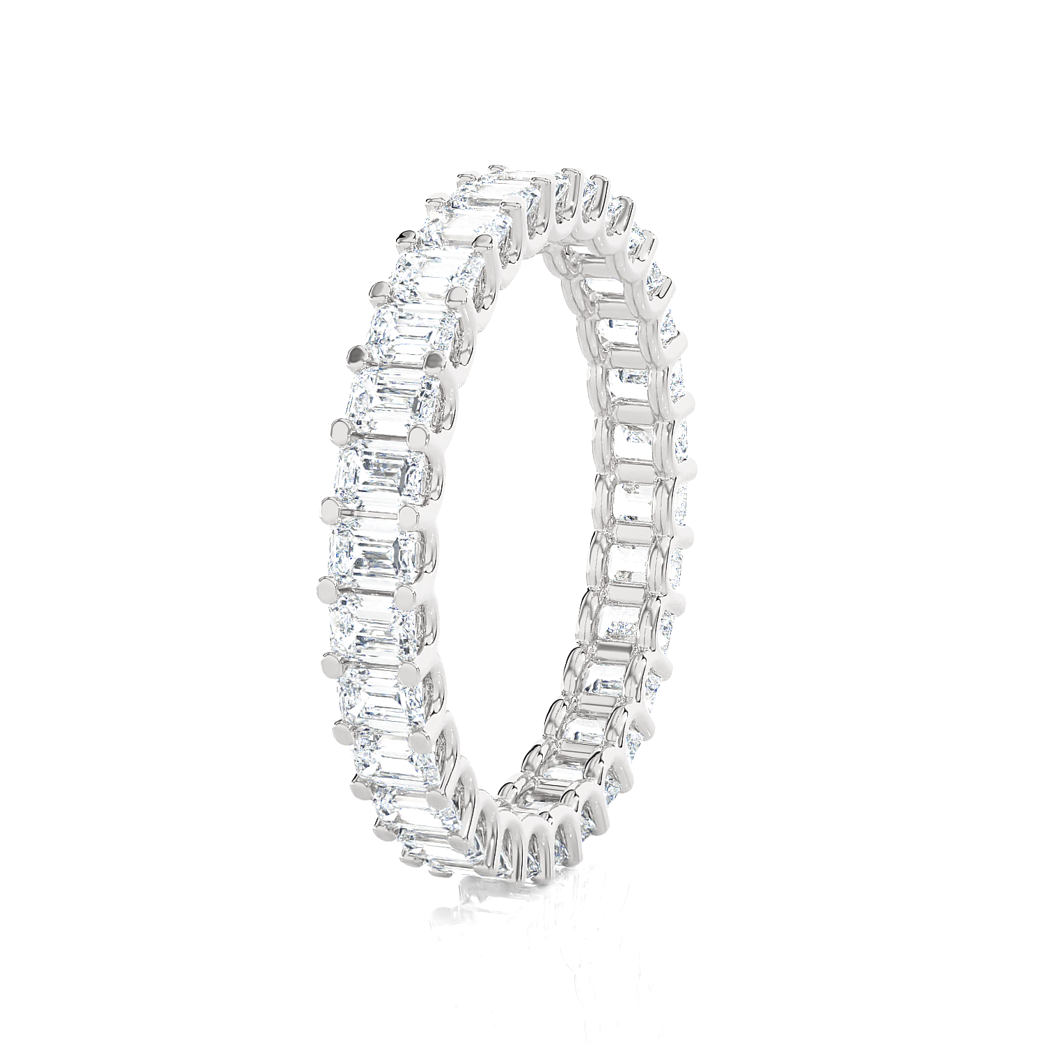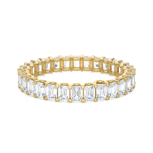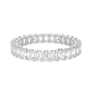 Introducing the radiant "Jeima Eternity Ring," a timeless symbol of love and beauty. This exquisite eternity band features captivating emerald-cut diamonds that encircle the finger in a continuous display of elegance. Crafted with meticulous precision, the Jeima Eternity Ring is the perfect choice for those seeking a solitaire band that exudes sophistication and showcases the enchanting allure of emerald gemstones.
