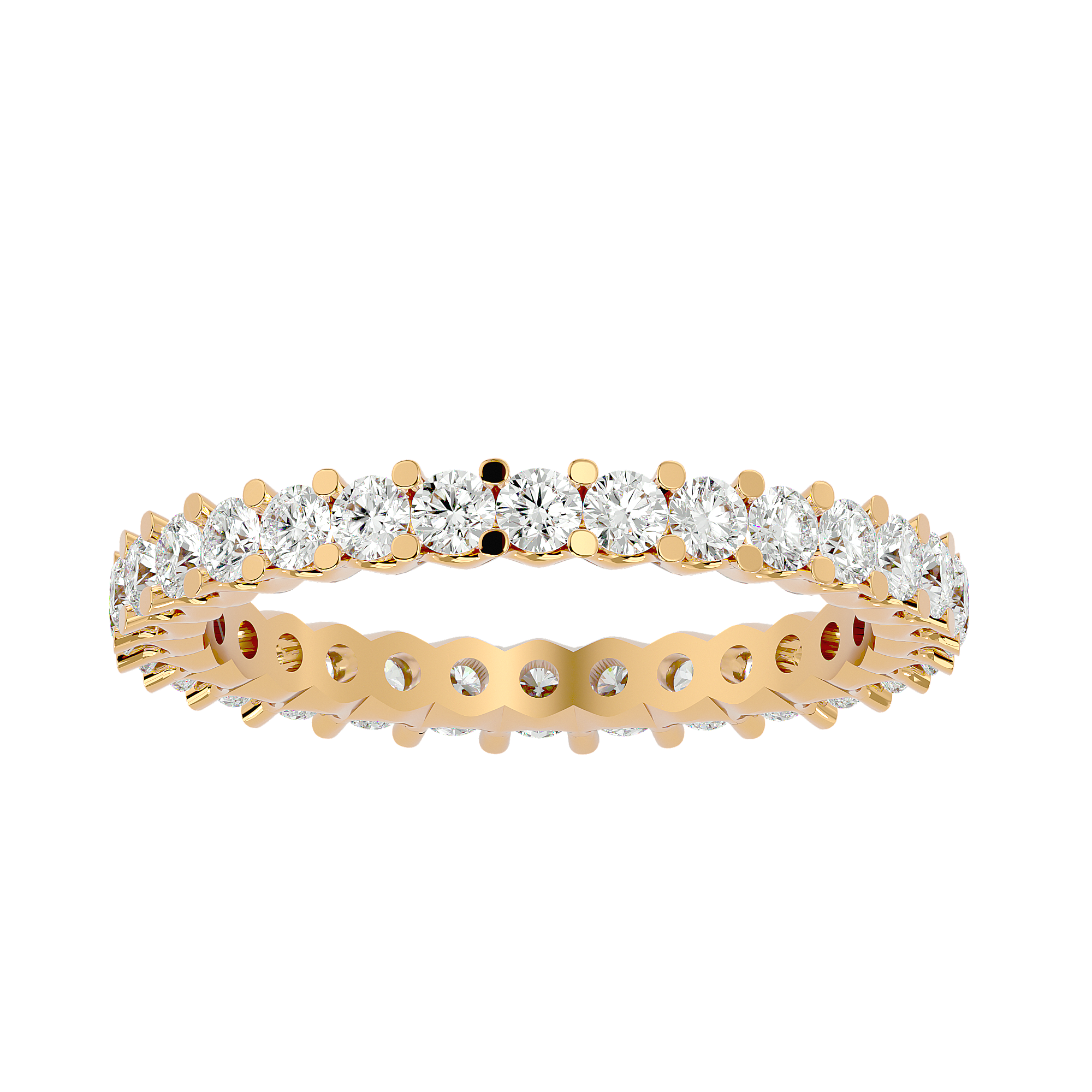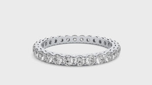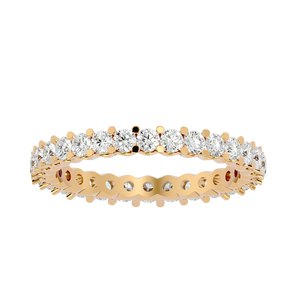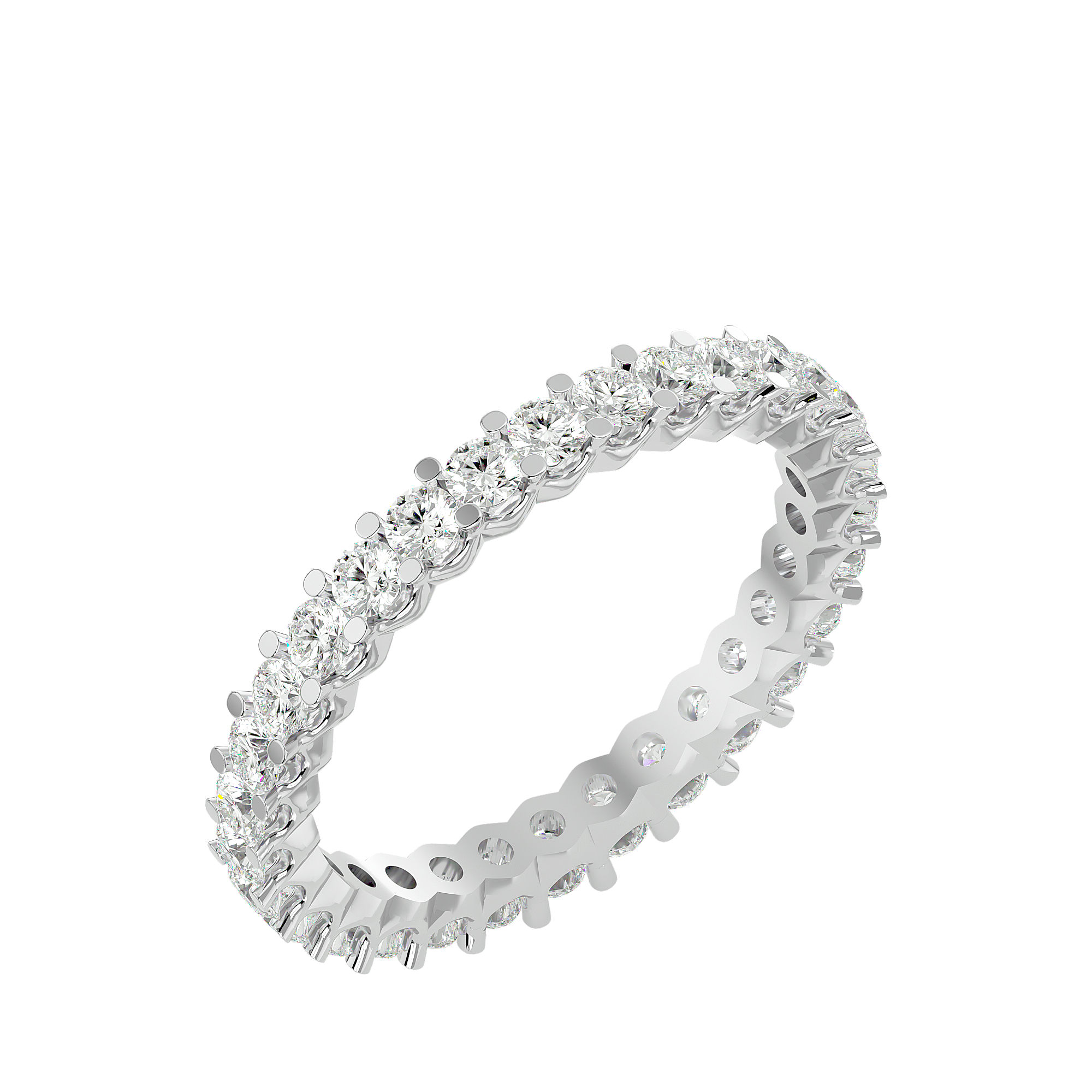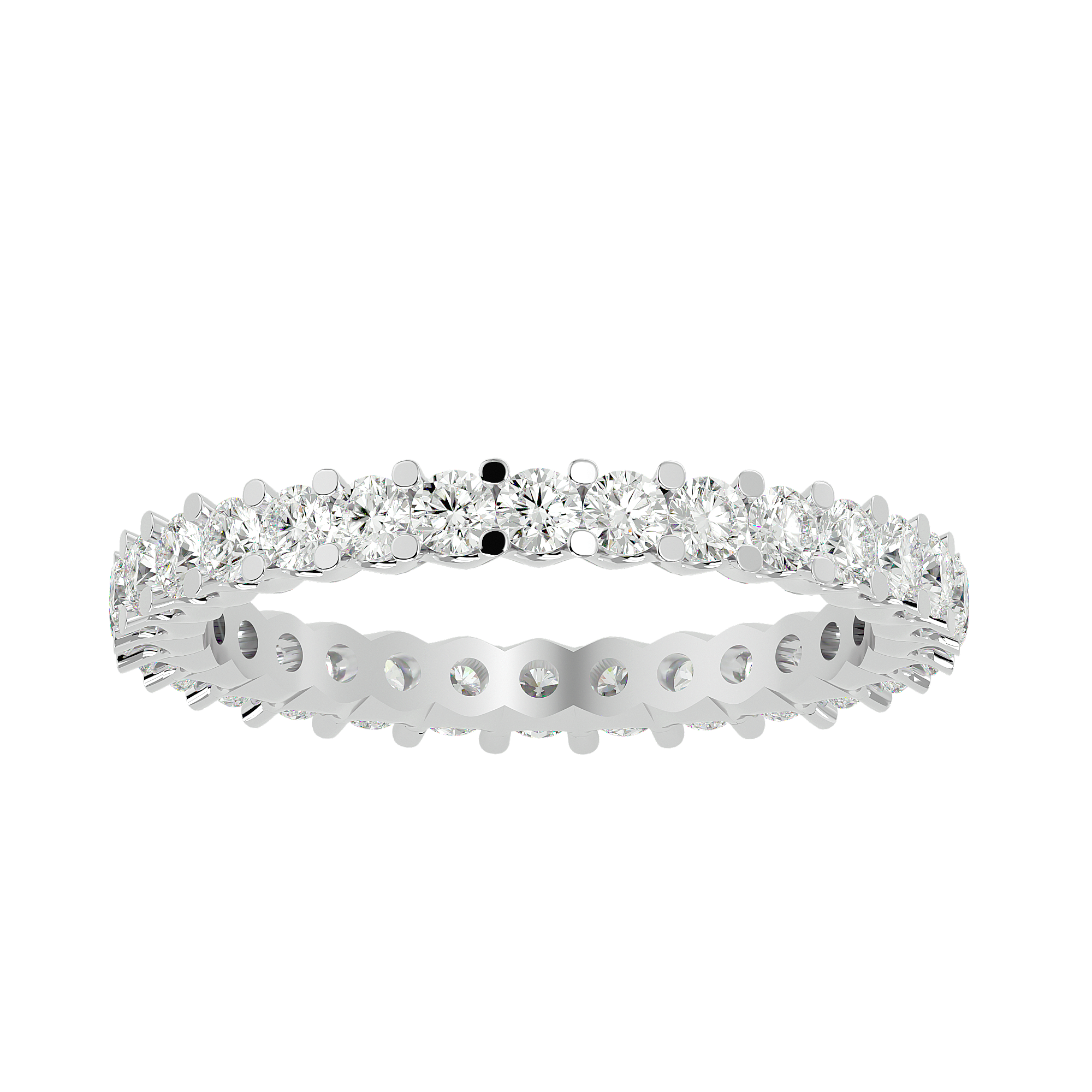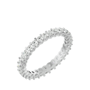 An intricate and delicately done eternity band brings to you sizable lab grown diamonds in a perfect French pave setting, each set in a floral display to give it maximum brilliance.