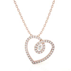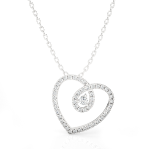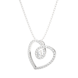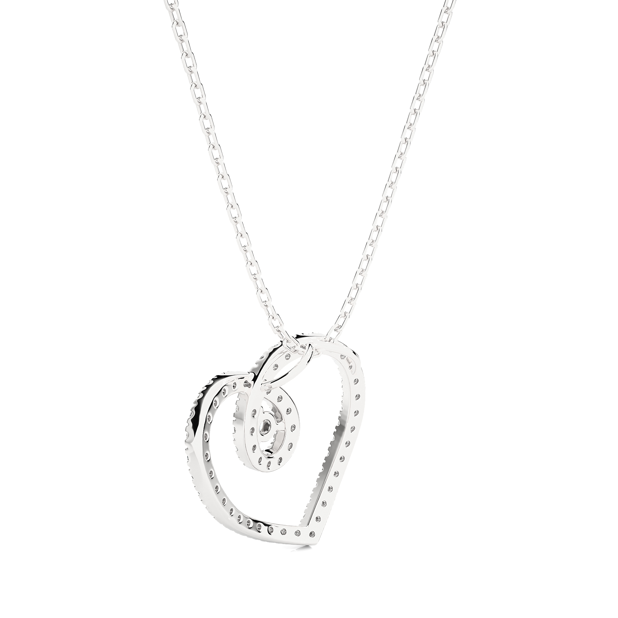 Hearts are forever with this brightly polished 14k gold drop heart Necklace, created for wearing on any occasion. Round brilliant cut lab grown diamonds micro pave set on this swirling heart ribbon Necklace give it a statement in sustainably and eco-friendly elegance, dangling from a tapered bail.
