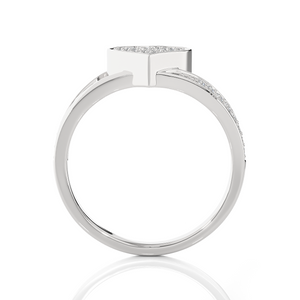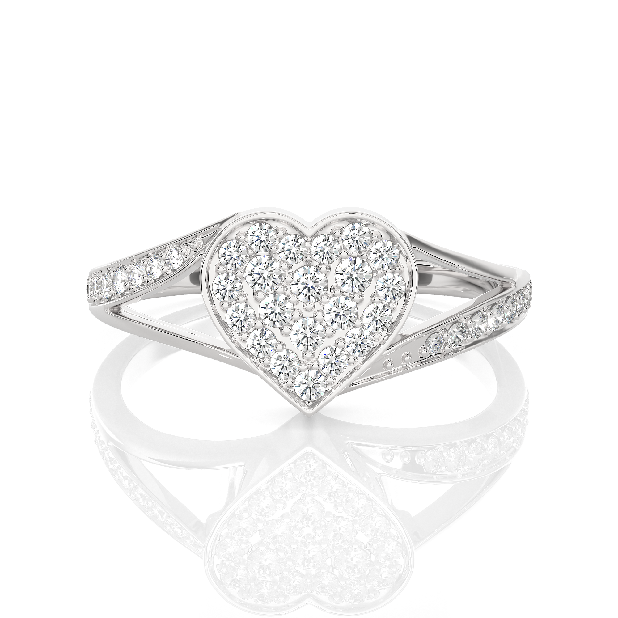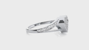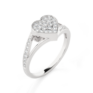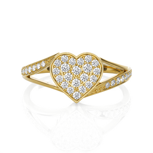 Select this 14k/18k gold ring for a gift to any loved one or an indulgent treat for yourself, all finely crafted in a rich shine with a lightweight, delicate silhouette. Sparkling round brilliant cut lab grown diamonds pave set in a heart center and on the split shoulder shank gives it a unique symmetry.