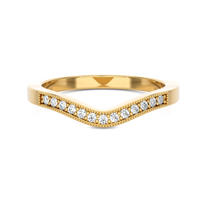 Celebrate your next anniversary or other special moments by gifting this 14k/18k gold diamond ring to your loved one in mind. The scintillating round brilliant cut diamonds channel prong set on the top of this slim band gives it luxury complemented by the milgrain beaded edges. The lightweight design of this diamond ring makes it ultra-versatile, perfect for stacking with other rings if desired.