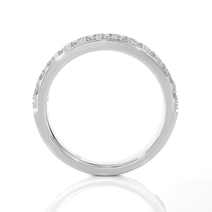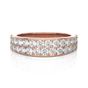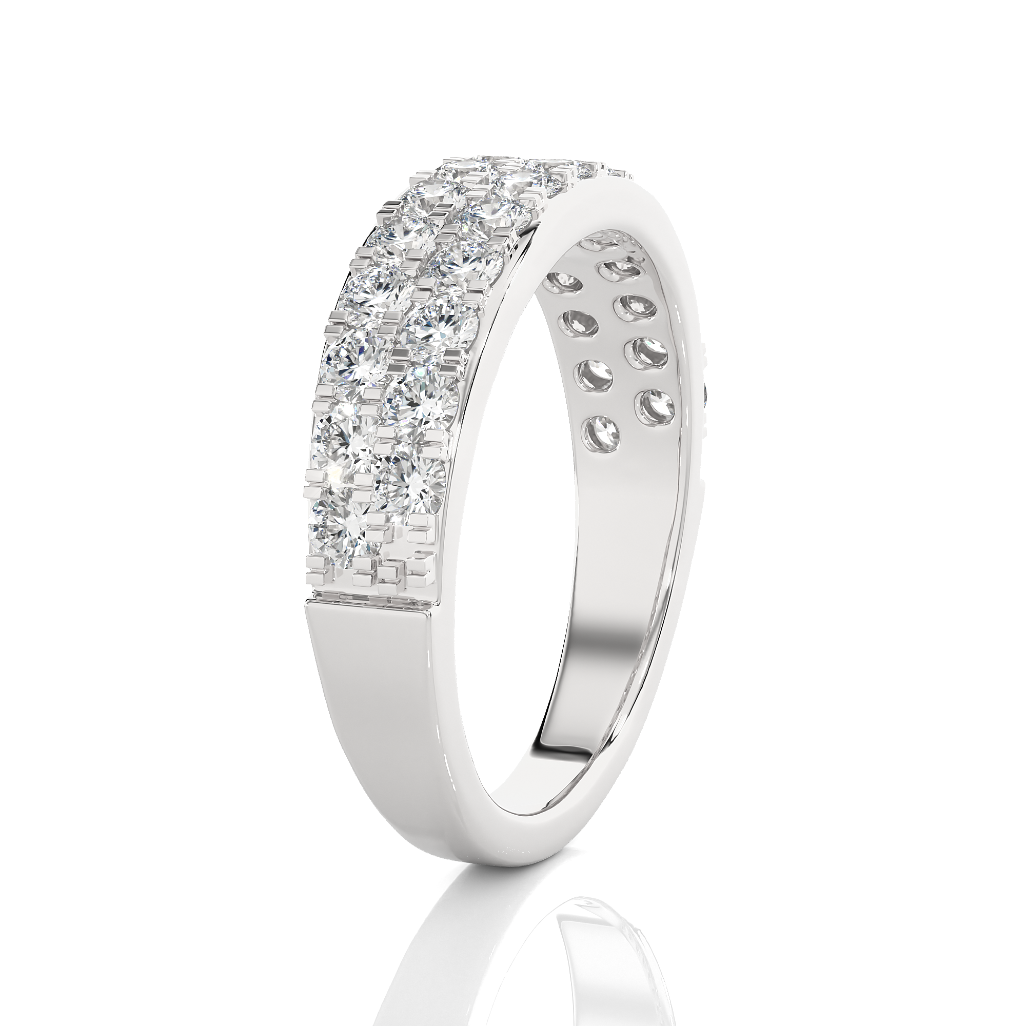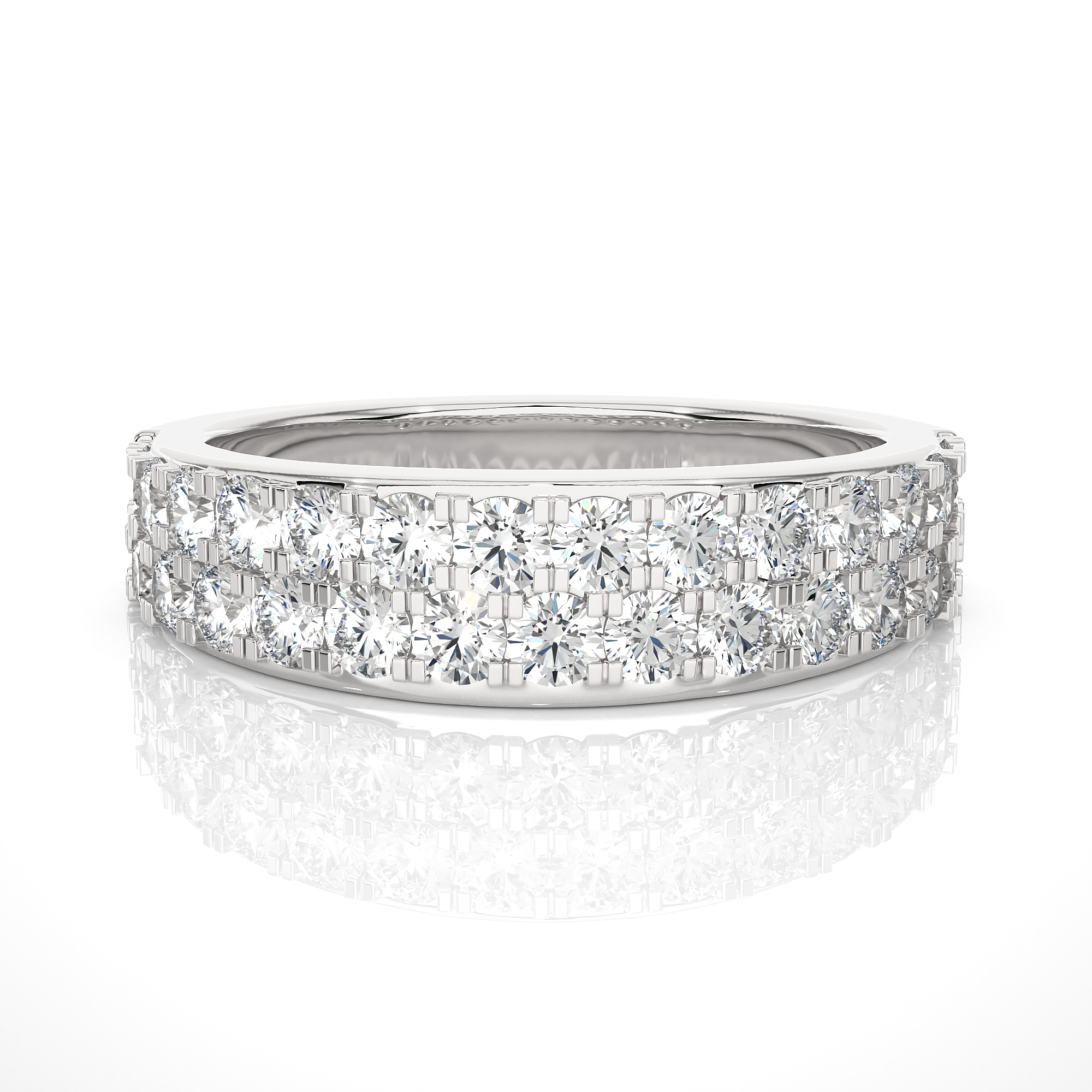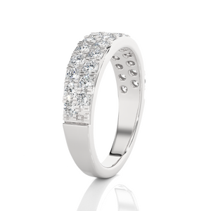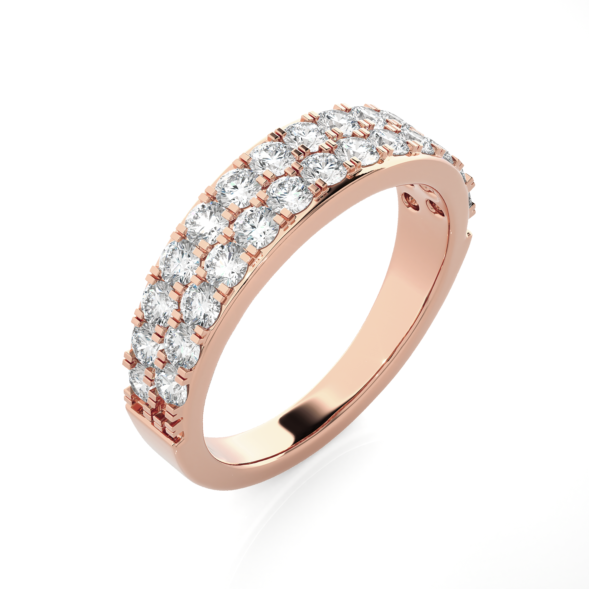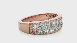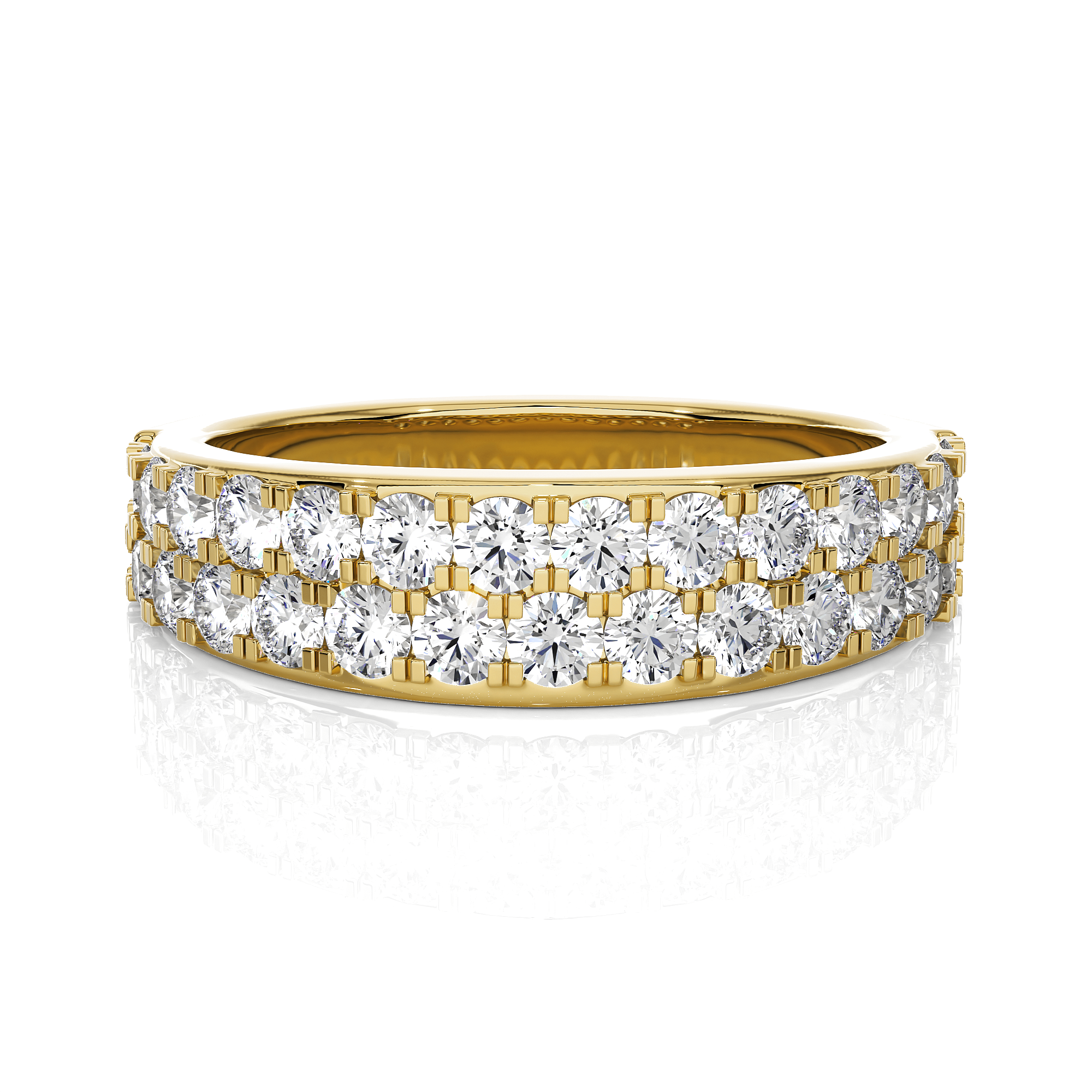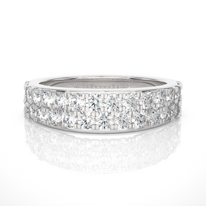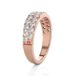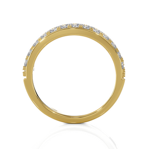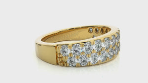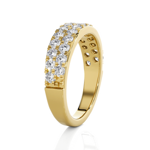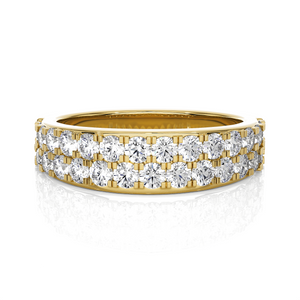 Celebrate years of romance with this brightly polished 14k gold diamond ring. Two rows of round brilliant cut diamonds on a tapered band give this elegant ring a ½ eternity style. Double the luxury with this beautiful diamond anniversary ring--perfect for stacking with an engagement ring and other fine diamond bands.